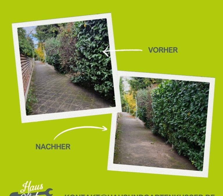 Ich mähe den Rasen, schneide Hecken, entferne Unkraut und sorge für einen gepflegten, einladenden Garten.